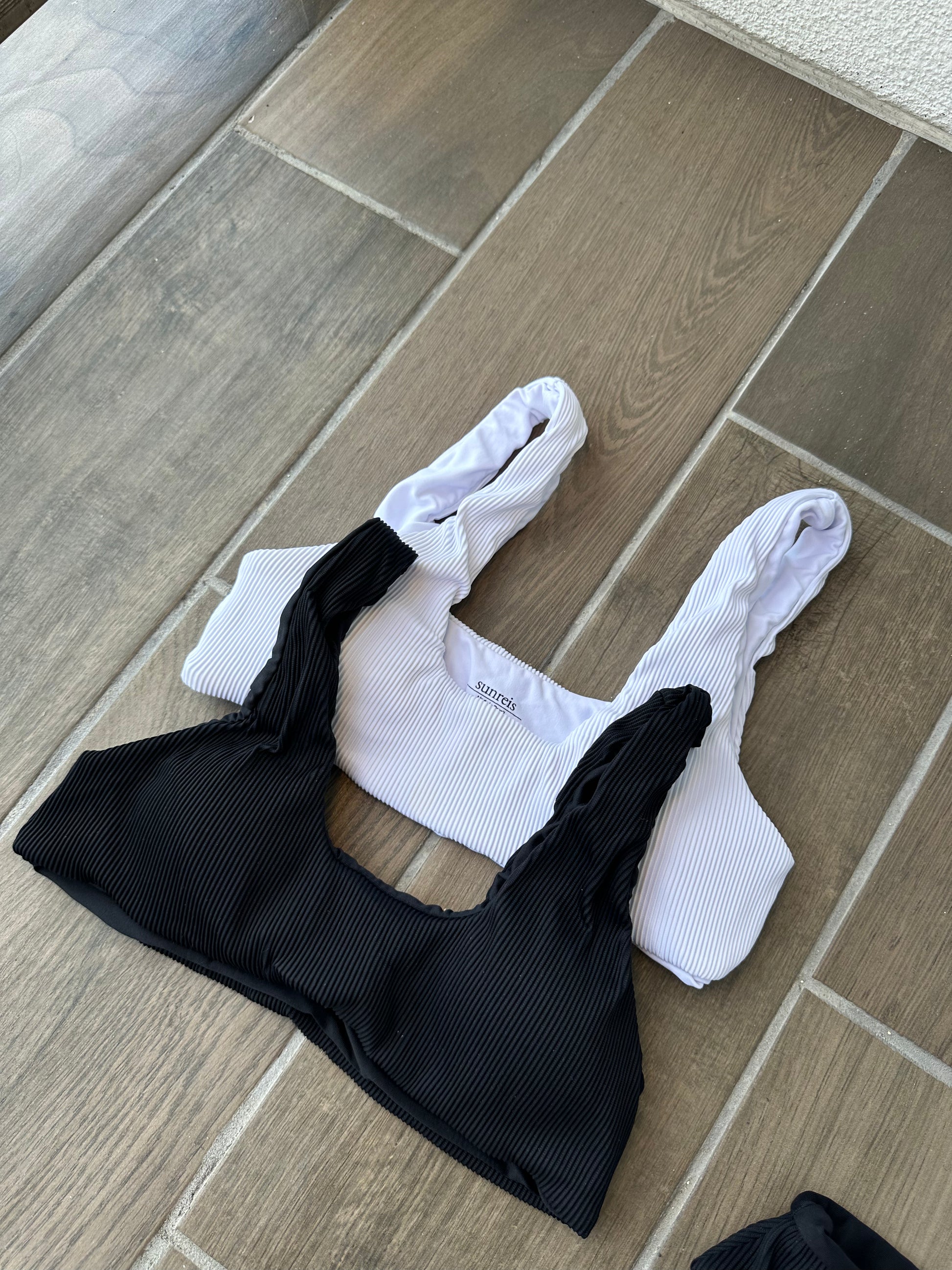 A basic RIBBED material bikini crop tank top. Best paired with the Alisha bikini bottom (sold separately). Made with sustainable and biodegradable fabric.