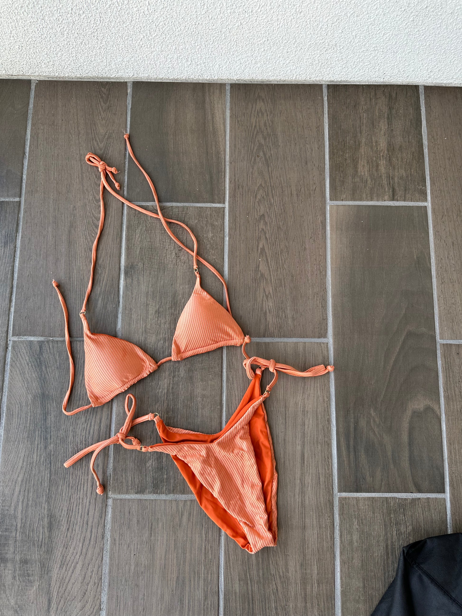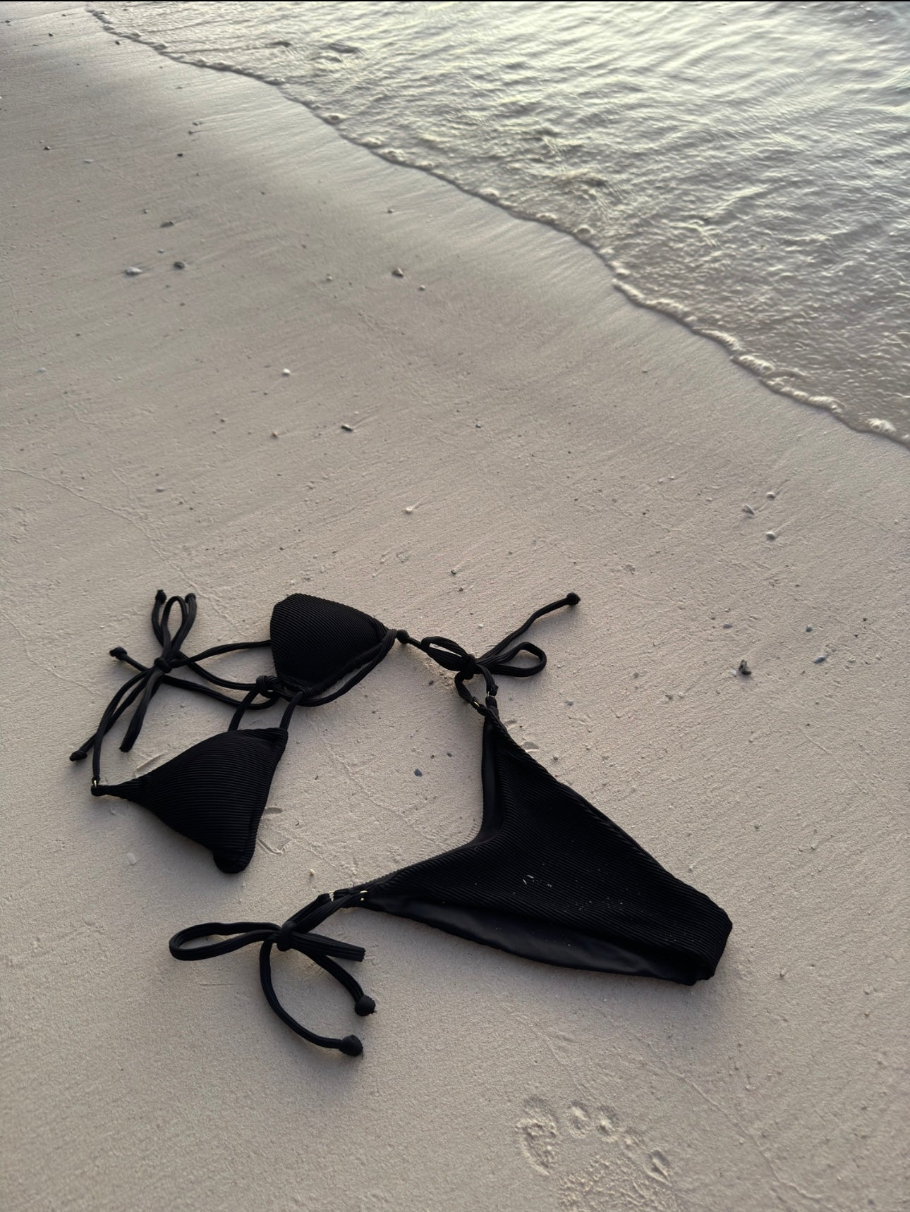 A basic RIBBED material bikini top. Best paired with the Emma bikini bottom (sold separately). Made with sustainable and biodegradable fabric.